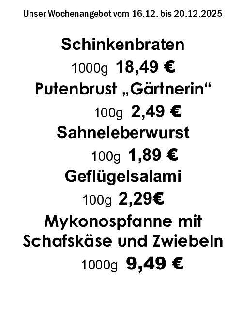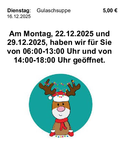Bitte beachten Sie für das Weihnachtsessen den Bestellschluß am 15.12.25 !